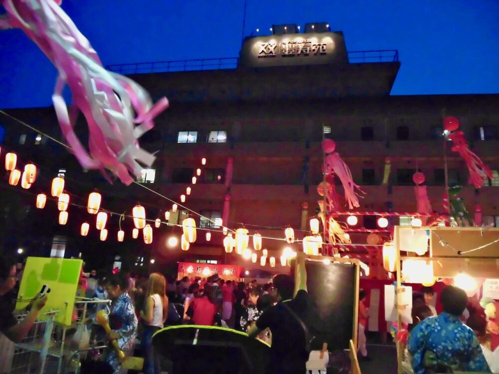 『豊寿苑夏祭り』は、地域住民との交流に重きを置いて、屋外に櫓を組み、夜店も出して、盛りだくさんのイベントを夜間おこないました。