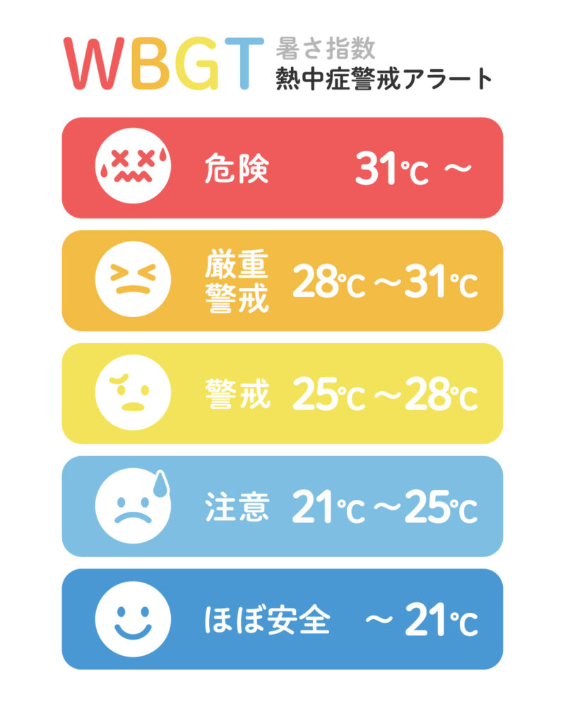 室温は必ず調整し、こまめな水分・塩分・ミネラル補給を心がけましょう。